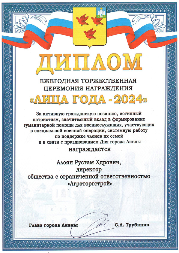 Диплом "Лица года - 2024"
