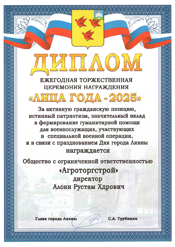 Диплом "Лица года - 2025"